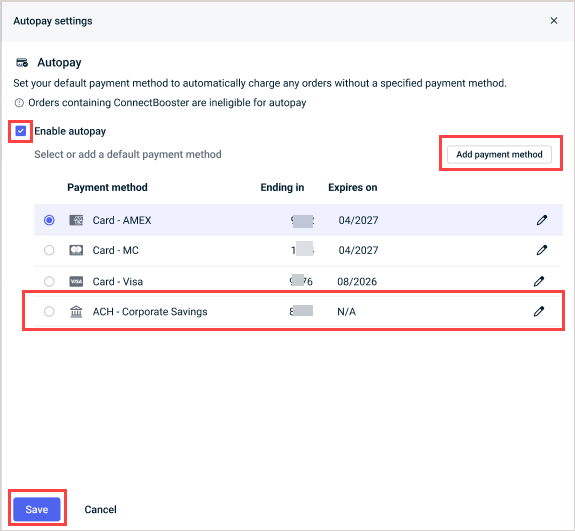 ACH option for Autopay default payment method