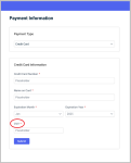 New Customer Payment Information pages